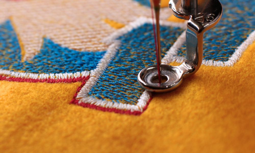 Description: Attaches pre-cut fabric shapes onto base material, combining textures for unique, layered visual design effects.